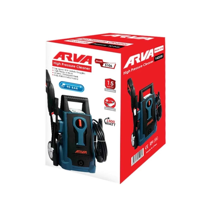 مشخصات محصول منبع تغذیه: برق متناوب 220 ولت نوع موتور دستگاه: موتور ذغالی تک فاز توان: 1400 وات فشار موثر آب خروجی: 90 بار میزان جریان موثر آب خروجی: 5.5 لیتر بر دقیقه فشار آب ورودی: 4 بار حداکثر دمای آب: 50 درجه سانتیگراد قابلیت مکش و ساکشن آب: ندارد مخزن مواد شوینده: دارد نوع مواد شوینده قابل استفاده: مواد شوینده مایع و رقیق شده و غیر اسیدی طول شلنگ: شلنگ فشار قوی 5 متری گارانتی: 15 ماه دارای لنس یا گان 2 تکه دارای اسپری گان فلزی همراه با سر نازل قابل تنظیم دارای چرخ جهت حمل و نقل آسان دستگاه دارای موتور با قدرت و سیم پیچی 100% مس دارای سنسور قطع کن حرارتی برای جلوگیری از آسیب به موتور در حرارت بالا داری صافی در قسمت ورودی آب برای جلوگیری از ورود ذرات به داخل دستگاه دارای کابل 5 متری با استاندارد VDE آلمان دارای جایگاه مشخص برای جمع کردن شلنگ در پایان کار دارای عینک ایمنی خرید یک کارواش خانگی می تواند علاوه بر کاهش هزینه ها موجب راحتی و جلوگیری از اتلاف وقت شما نیز بشود. در صورتی که نیاز به یک کارواش خانگی سبک با کارایی بالا دارید؛ کارواش آروا 5106 یک انتخاب مناسب برای شما است. زمانی که قصد خرید یک کارواش را می کنید به عواملی چون راحتی و ایمنی، قدرت شویندگی و عمر دستگاه حتما توجه کنید. در ادامه تمام مزیت ها و ویژگی های کارواش خانگی مدل 5106 را برایتان توضیح می دهیم. مهم ترین مزیت کارواش خانگی آروا 5106 اگر از شما بپرسیم مهم ترین ویژگی که هنگام خرید یک کارواش به آن اهمیت می دهید چیست مسلما پاسخ بسیاری از شما قدرت شویندگی بالا می باشد. که این قدرت به عواملی چون توان و نوع موتور، نوع نازل و شلنگ مورد استفاده بستگی دارد. موتور کارواش 5106 آروا از نوع ذغالی است و توان آن 1400 وات می باشد. ویژگی هایی که باعث افزایش طول عمر کارواش 5106 می شود اگر بخواهیم تمام ویژگی هایی که موجب افزایش طول عمر کارواش خانگی 5106 می شود را نام ببریم؛ می توانیم به مواردی مانند سیم پیچی 100% مس، موتور نخ بندی شده، کالکتور با ضخامت بالا و سیم تحت استاندارد VDE آلمان اشاره کنیم. در انتهای توضیحات نیز باید به این مورد اشاره کنیم که کارواش 90 بار 5106 مانند دیگر محصولات آروا دارای گارانتی و خدمات پس از فروش می باشد. به همین دلیل برای خرید این دستگاه هیچ جای نگرانی ندارید چون آروا با شماست.