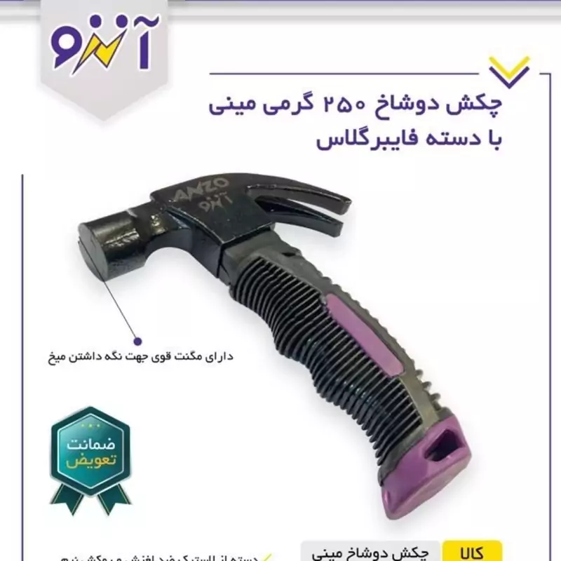 چکش دسته کوتاه آنزو سری چکش از جنس فولاد ساخته شده و در برابر ضربات سخت و مقاومت بالایی برخوردار است روکش نرم و انعطاف پذیر وزن چکش 200 گرم