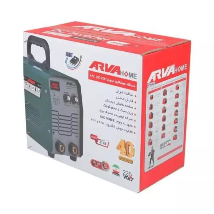 مشخصات محصول لوازم جانبی: انبر جوش و انبر اتصال ولتاژ برق: تکفاز 220 ولت فرکانس: 50 هرتز جریان ورودی اسمی: 2 الی 20 آمپر جریان خروجی: 20 الی 200 آمپر چرخه کاری: 45% کارایی: 73% ضریب توان: 0.85 درجه عایق کاری: F درجه حفاظت بدنه در فضای سرپوشیده: IP23S درجه حفاظت بدنه در فضای سر باز: IP21S وزن: 4.2 کیلوگرم ابعاد دستگاه: 220×155×350 میلیمتر قطر الکترودهای مناسب: 2.5 و 3.2 نوع سوئیچ قدرت: IGBT مدت گارانتی: 40 ماه ساخت ایران صرفه جویی در مصرف برق وزن سبک و حجم کوچک دارای ولوم current و ولوم arc force مجهز به آمپرمتر دیجیتال جهت سهولت در تنظیم آمپر خروجی مجهز به فن 5500 دور مجهز به سیستم محافظتی خودکار مجهز به خاصیت anti stick