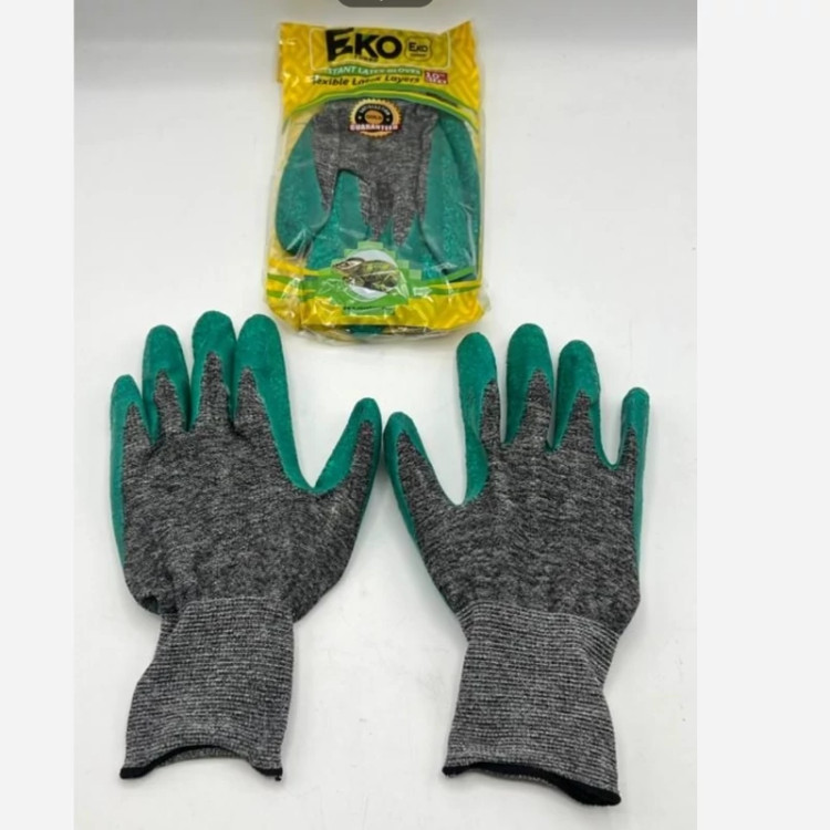 دستکش لاتکس صنعتی اکو لایه های لاتکس و نیتریل مقاوم و انعطاف پذیر پارچه پلی استر با کیفیت بالا و ضخامت بیشتر مقاوم در برابر سايش برش و پارگی مطابق با استاندارد EN388 سر آستین کش بافت شده