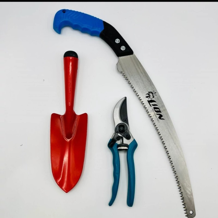 یک عدد اره چوب بر لیون به همراه قیچی درجه یک نولان ویک عدد بیلچه