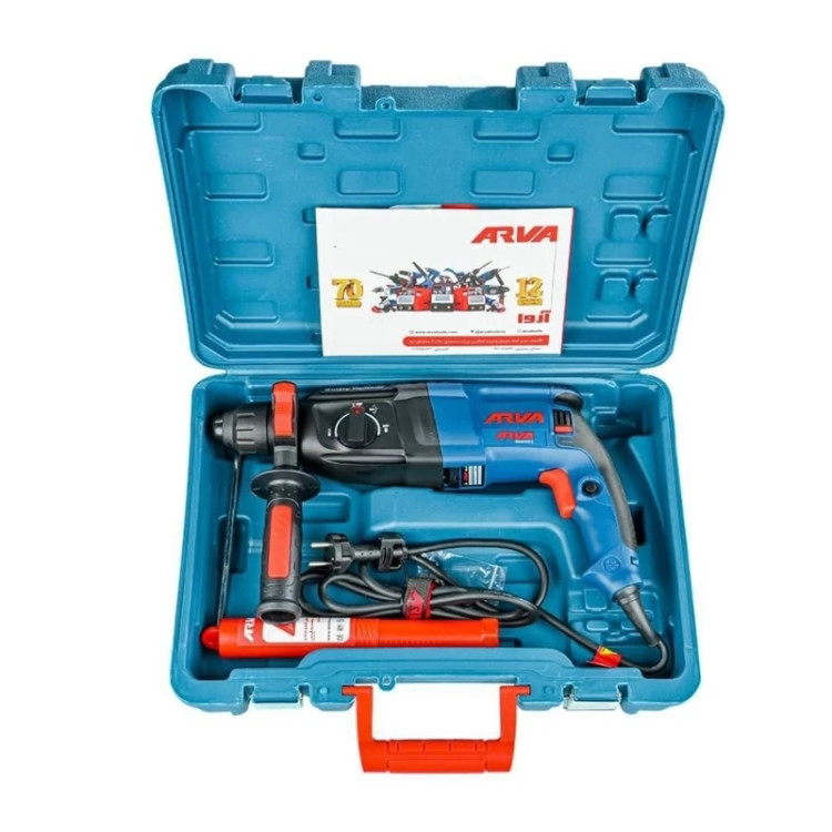 مشخصات محصول دارای دسته کمکی با قابلیت چرخش 360 درجه گرید صنعتی و با دوام دارای گیر بکس 4 نوع عملکرد داری کیف BMC ضد لرزش و کم صدا داری سرعت آزاد 1100 دور بر دقیقه قدرت ضربه 3 ژول سرعت ضربه 4900 ضربه در دقیقه داری بلبرینگ ضد غبار همراه با کابل 2 متری ، مته سایز 6 – 8 – 10 و قلم های نوک تیز و سرتخت حداکثر ظرفیت سوراخ کاری در بتن 26 میلی متر و در فولاد 13 میلی متر