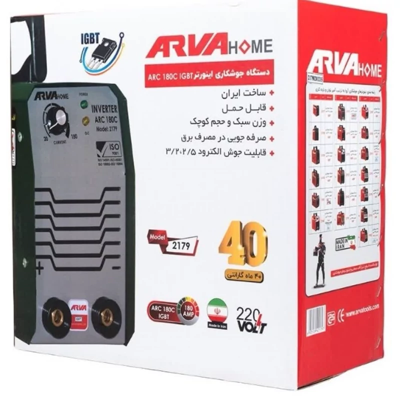 ابزار آلات آروا اینورتر جوشکاری 180C آمپر آروا هوم مدل 2179 محصولات ابزار آلات جوش و برش دستگاه جوش (اینورتر جوشکاری) بزرگنمایی تصویر اینورتر جوشکاری آروا مدل 2179دستگاه جوش آروا مدل 2179اینورتر جوشکاری آرواهوم مدل 2179دستگاه جوش اینورتر آروا مدل 2179اینورتر جوشکاری 180 آمپر آرواهوم مدل 2179 اینورتر جوشکاری آروا مدل 2179 دستگاه جوش آروا مدل 2179 اینورتر جوشکاری آرواهوم مدل 2179 دستگاه جوش اینورتر آروا مدل 2179 اینورتر جوشکاری 180 آمپر آرواهوم مدل 2179 PreviousNext مشخصات محصول لوازم جانبی: انبر جوش و انبر اتصال ولتاژ برق: تکفاز 220 ولت فرکانس: 50 هرتز جریان ورودی اسمی: 2 الی 14 آمپر جریان خروجی: 20 الی 180 آمپر چرخه کاری: 65% کارایی: 98% ضریب توان: 0.73 درجه عایق کاری: F درجه حفاظت بدنه در فضای سرپوشیده: IP23S درجه حفاظت بدنه در فضای سر باز: IP21S وزن: 3.1 کیلوگرم ابعاد دستگاه: 230×130×310 میلیمتر قطر الکترودهای مناسب: 2.5 و 3.2 نوع سوئیچ قدرت: IGBT مدت گارانتی: 40 ماه ساخت ایران صرفه جویی در مصرف برق وزن سبک و حجم کوچک دارای ولوم current مجهز به فن 5500 دور مجهز به سیستم محافظتی خودکار مجهز به خاصیت anti stick دارای طراحی داخلی مناسب برای گردش هوا
